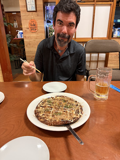 ย ย ย Read moreWe happened upon this place by accident. Some of the best things in life are because of fortune! We ordered the Goya Chanpuru which is Okinawa soul food, pork belly with garlic shoots(amazing) and Okonomiyaki which may be better than Hiroshima. The ladies who run the place are super sweet and accommodating Plan to use Google translate as there are no photos on the menu. And you sit on tatami mats. Have fun and enjoy...
