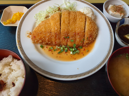 メニューは、宮古そば、ソーメンチャンプルー、カレーなど、幅広いです。チリカツ定食を食べてみたのですが、ちょっと甘めのチリソースで食べるカツが酸味もあって意外とさっぱりして美味しいです。もずくや豆腐もついてるし、最後まで沖縄の食堂を楽しめました。