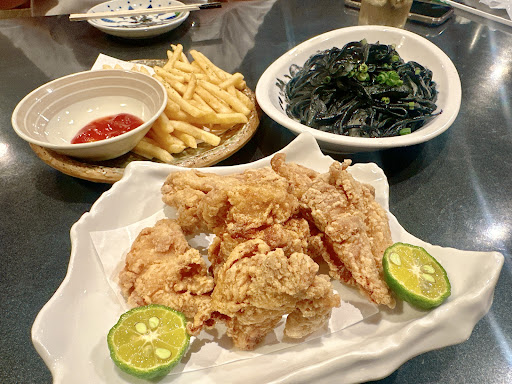 Read moreオーナーが代わったのでしょうか、昔のレビューでは酷評されておりますが最近のレビューでは良い評価ばかりで気になり入店。 建物の横に入り口があるので少し分かりにくいかもしれません。 料理は沖縄料理も豊富で観光客にオススメです。 ポーク玉子は焼いたポークと玉子焼きがセットで出てきます。玉子焼きが味が薄く、味の濃いポークと一緒に食べることを前提として提供されるので、一緒に食べるとベストな味付けになる、他の店では中々無い考えられた味付けで感心しました。 唐揚げは皮の部分を広げて揚げることで全体的に大きく見せてパリパリでジューシーな食感を楽しめるようになっています。揚げ具合は丁度良く、外はパリパリで中はジューシー、揚げ過ぎによるパサパサ感や焦げ感は無かったです。 ヒラヤーチはピザと勘違いしてしまうくらい大きく、生地はモチモチで具の量も丁度いい。これ以上、具が増えるとモチモチ感は失われるし、少なすぎると具が少ない食べ応えのないヒラヤーチになりますが、このヒラヤーチは食べ応え抜群。 宮古天ぷらは野菜と魚の2種で大きくて食べ応えがあります。どちらも油っぽくなく、サクサク。野菜天ぷらはかき揚げに近い揚げ方ですが、野菜の旨味を感じるベストな食感を残した揚げ具合。魚も同様に外はサクッと中はフワッとした出来上がりでした。 カウンターとテーブルがあり、一人でも飲めますが料理の量が多いのでハーフサイズがあると良い...