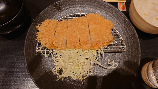 Read moreとても美味しくとてもイイ感じのトンカツ屋さんです。ロースカツ定食1518円(税込)を食べました。厚切りでサクサクジューシー、トンカツソース甘いのと辛いの選んで自分で擦った白ゴマに合わせたソースで食べます。ご飯、味噌汁はおかわり無料です。味噌汁は魚の出汁がよく効いてます。キャベツは山盛りで自家製のドレッシングをかけて食べますが、私は醤油を少し垂らす方が好みです。なのでドレッシング無しでお願いしました。美味しいので食べ過ぎ注意ですが、誘惑に負けておかわりしてしまいました。ご飯は白米と16穀米から選べます。私はトンカツの純粋な味を味わうために白米を選びました。店内も清潔で明るく店員さんも優しいですね。お持ち帰りや、注文のお弁当も出来ます。駐車場も広いです。