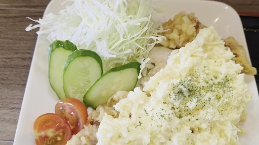 15分程度で料理が来ました チキン南蛮は1枚肉で揚げて、それを切って南蛮酢、タルタルソースが掛けられてます サラダも添えられています 味ですが、まあまあ美味しいです タルタルは当地にしては甘くないさらっとしてる感じです 味噌汁は濃厚で辛く、呉汁のような感じでした 小鉢も味が凄く濃い感じでした