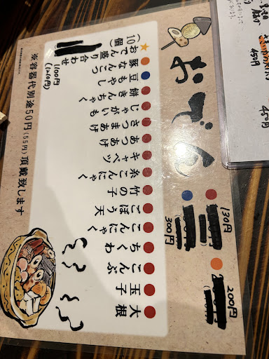 Read more里いもの唐揚げが食べたくて 以前から気になってたのですが、駐車場がいつも多くて… たまたま平日の夜に近くに用事があったので 行ってみるとOKでした😄 早速 里いもの唐揚げやおでん その他もろもろ頼んで 出てくる料理はもちろん お皿も目に楽しくて👍 とっても幸せな夜になりました。 一緒に行った知人は 里いもの唐揚げの美味しさに おかわりしようとしてました😆(写真は食べかけ… 食べたさが勝って写真撮るのを忘れてしまった) まいたけ天ぷらもサックサク🩷 だし巻き玉子はフッワフワ😍 おでんはホックホク👍 ほかの人気メニュー アジフライやしいたけのマヨ焼きなんかも食べたいので また...