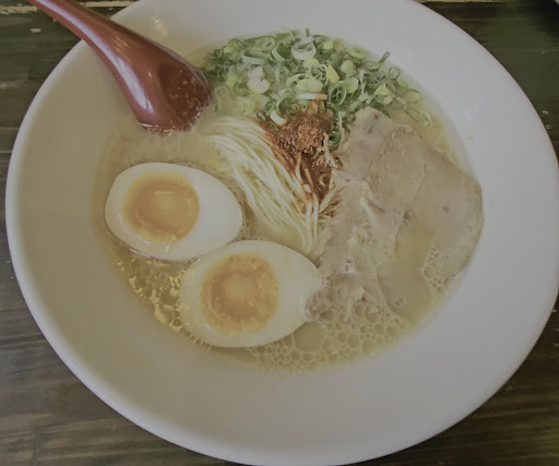 Read more県道33号・都城北郷線にあるお店で、近くには風来軒さん、光喜さんも立地しているラーメン激戦区のようです❗️ 他の方もコメントされていますが、博多の有名な「一蘭」さんと見た目も味も似ています✌️ 個人的にはスープはあか星さんの方が豚骨匂が少なく、優しい味で好印象でした。 駐車場は結構広く、入店して自販機で食券を購入して、案内された席に着席します。 カウンターが5席、2人掛けのテーブル席が3つ、4人掛けの座敷が2つ。土曜の昼時の来店で店内は常に満席でしたが、回転が早いためか待ち客の行列はありませんでした。 接客の女性スタッフが2名、厨房には4~5名の男性スタッフが。皆さん若く、元気があって店内は活気がありました👍 麺の固さ、赤だしの濃さを注文時に選べますが、紅生姜、辛子高菜、ゴマなどの味変の食材は置いてありません😅 あっという間に完食し、自席から半替玉60円を注文。女性スタッフが笑顔でお金を受け取り、自販機からチケットを購入し厨房に発注。手際よい対応がみていて好感が持てます✨ 都城の有名店「あ麺ぼう」さんには替玉用の「追いタレ」が用意されていて、これはこれで嬉しいのですが、あか星さんのスープには「追いタレ」は不要でした😁 初めてお邪魔しましたが、今度は家内と再訪したいと思...