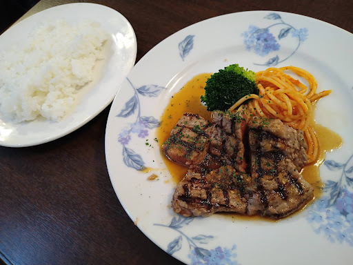 国道10号線、都城インターチェンジに行くまでに、必ず店舗前を通ってました。 看板は、よく見るし美味しいのかなーと気になってはいても、寄ったことはありませんでしたが、友人が美味しかったとSNSで知らせてくれましたので初めて伺いました。昔からある、、、といった風合いの素敵な建物です。 ランチタイムに行きましたがお客さんも多ければスタッフも多くて驚きました。 注文してから出てくるまでも早く、ランチに間に合うように準備してらっしゃるんだろうなと。 スープ、サラダ、ご飯(大盛り無料でした)、メインのお肉150gのランチセットにしましたが、柔らかく味もよく、あっという間に食べてしまいました。 あまりに美味しくて大満足なのに、滞在時間は1時間無かったです。 早くて安くて美味い❗ステーキなんてなかなか無いよねと、リピート確定ですね。 駐車場は、建物横を左側道に入ると、5~6台停められるようになってます。 お客さんの回転が早いせいか、12時10分頃行ったときに丁度、2台スペースが空きました。お店も分かりやすくて出入りもしやす...