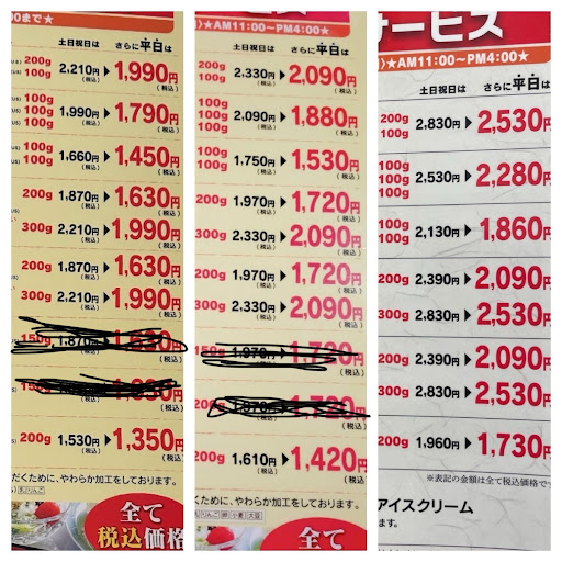 とても美味しかったです。清潔な店内です。ただ残念なのはこのコロナの時代にマスクをしているとは言え、店員の口数が多すぎます。持ってきたセット品をひとつずつ大声で説明する必要は全く無いと思います。これが肉です、これがスープです、これがサラダがですなどとは見れば一目瞭然なのに。コロナに気をつけていますと説明文がありますが、無駄な喋り過ぎは気分が良くないですね。必要最低限にして欲しいですね。過ぎたるは及ばざるがごとし、逆効果でしょうね。 全体的に量が多く値段も高いので頻繁にはリピート出来ませんね。もっと今の時代にあったメニューも考えて欲しいです。特に高齢で少食の私には美味しいのに頻繁に行けないのは大変残念です。特別高価ではないと思いますが、気楽に行ける価格帯ではないとも思います。もっと気軽なメニューが有ればもっと行きたいですね。肉の量が少なく、キャベツ、デザートはなしで、スープも軽いもので安いと頻繁に行きますね。他の店舗も含めて今のところ行くのは年に数回と言ったところでしょうか。 大量のキャベツやご汁はせっかく口の中の焼き肉とご飯の味のハーモニーを打ち消してしまうと思うのは私だけでしょうか? 土日、祝日との料理の価格差が大き過ぎるので、可能な限り土日、祝日には行きません。私のようなものでも頻繁に行ける店、メニ...