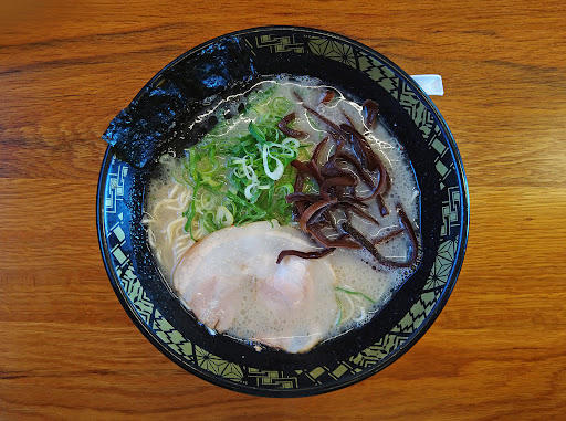 店舗の外観が黒を強調した造りで、人によっては威圧感を感じ、少々入り辛さがある店だが、この近辺では珍しい、今どきな豚骨臭くないこってりな久留米ラーメン。 背油もたっぷり入っており、塩分は控えめだが濃厚なスープ。 スープは「こってり」と「あっさり」があり、今回食べたのはこってり。 油は無料で増量してくれる。 チャーシューはとろけるくらい柔らかく美味しい。 ただ、たまたまかもしれないが、麺のゆで方が足りなかったのか、そういう麺なのかわからないが、パサパサして固まりもあった。 これはちょっとあり得ないって感じ。 スープがかなり美味しいだけに残念だった… あと基本的に器が小さくスープの量が少ない。 価格は普通のラーメンで550円 焼き飯はかなり美味しく500円 半焼き飯やギョーザや白ご飯などとのセットもある。 全体的に価格は高い。 焼き飯は柳川の「松ちゃん」の焼き飯の塩分控えめバージョンって感じで個人的にはかなり気に入ったが、1つ致命的に残念なのは皿への盛り方。かなり雑で、あちこち飛び散ってるし形悪いし、ちょっとここまで雑に盛る?ってくらい雑。素人でもこんなに雑には盛らないレベルで、オープンしてまだ間もないのに誠意を感じられませんでした。 ちなみに調理してた人は女性。 会計時に、替え玉、煮玉子やもやしなどの乗せもの、ビールのいずれかの無料券をくれるのはお得。 なんと言うか一言で言うなら、良いところと悪いところが両極端な店って印象でした。