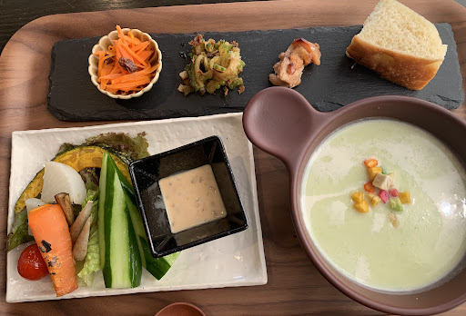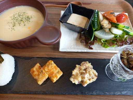 Read moreとにかくスタッフさんが丁寧で優しかったです! openは11:30なのに私達が11:00だと思い伺ったら外は暑くて1歳の息子もいたため、店内で待たせて頂き本当に有難かったです。 食事も優しいお味のものが多く、息子もいろんなものが食べれました! 唯一、この日のパスタが塩分多くて辛かったですが、ピザはいちじくのピザでこれまた美味しい!お腹いっぱいで持ち帰りました 笑 プチデザート、ドリンクまでついて1200円はコスパ良しです! 息子にはソフトクリームまで出して頂いて、子供にも優しいお店でした。 平日でもあっという間に席も満席になってました! 写真は息子にスマホを取られていたため撮れなかっ...