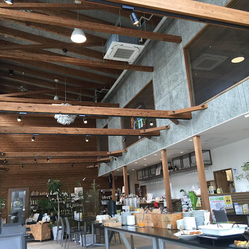 所用で時間調整をするつもりでランチに訪問しました 駐車場たくさん有ります♪ エントランはもバリアフリーのスロープもあります。 入り口入って左から中央にかけて地産地消の商品がたくさん並んでました。 右手へ進むと 広い空間で心地よい環境です