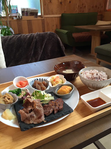 出先でどこか良いお店は無いかと検索し、こちらのクチコミ4.2を信じて初訪問。 可愛いお店の予感にワクワクしながら13時前に2人で入店。 間もなく3人のお客さんが会計に。 会話をしながら別々に会計しているようでした。その間、店員さんはテーブルには来ない。もちろん水もメニューも無い状態。 こちらも会話をしていたので気にしていませんでしたが、すでに先客が退店しているので、さすがにメニューくらいは見たいと催促。 水と一緒にメニューを運んで来てくれました。 その際に『13:30にお弁当の予約が入っているので、少しお待たせするかもしれませんが大丈夫ですか?』と聞かれ、ま、急いではいないので『大丈夫です』と答え、Aランチ990円とブレンド茶380円を2つずつ注文。 会話をしながら待ちましたが、お腹が空いた⋯。時間を見ると13:20。すでに入店してから30分が経過。その間水1杯のみ。 別のお客さんが入店。同じ説明。 そして13:30、お弁当のお客さんが受け取りに。え?予約のお弁当って1個だったんだ⋯ その直後に『お先にサラダをどうぞ』と運ばれてきた。やっと⋯と口にしたら、普通に美味しい。温野菜で、量は少ないが、ワンプレートとして考えるとこれくらいかな。 あっという間に平らげ、今か今かと待つ。 連れも苛立っているが、そろそろ来るでしょう。となだめる。 ⋯が、それにしても遅い。 時計を見ると13:50。入店してから1時間。付け合せのサラダのみ。水のおかわりもなし。 連れも苛立ち、もう帰ろうと言い始めた。半ば帰るつもりで、まだですか?と声をかけると『今、肉を焼いていますので、それを乗せたらお運びします。それとも帰られますか?』と。 ここまで待ったのだから、食べて帰ろうと着席。 間もなく運ばれて来た。 やっと来たー。と料理を見てガッカリ。 5ミリくらいの厚さしかないスライスしたステーキ?が2枚。5cmくらいの大きさのミニハンバーグ(回転寿司のハンバーグ寿司の1個くらい)。豚の薄切り肉1枚。 正直な印象は、家で食事の残りをひと皿にまとめた感じ。 そして、なによりご飯が⋯ 箸を入れたら硬い感覚。口に運んだら冷たくて硬い。手で触ってみたらカピカピしている。 もう、イライラMAX。 『ご飯がカピカピで冷たいんですけど⋯?』とクレーム。 『そんなはずはありません。朝炊いたご飯ですから。うちはいつもこの温度です。温めますか?』と電子レンジに入れようとする。 そういう事じゃないでしょ?手で触ってみて下さいよ。カピカピですよ!と再クレーム。 では、新しいものをお持ちします。と、先程のとは違う温かいご飯が出て来ました。 明らかに、盛り付けてから時間が経っている物だったはず。 仏前にお供えして下げたご飯のような表面が乾いた感じでした。 最初から盛り直して下さればいいものを⋯ 肉以外のおかずは全て作り置きの冷たいもの。チヂミ?も干し芋?も冷たい。 じゃ、この肉を焼くのに、1時間? 大目に見て、お弁当を渡してから30分? 何でこんなに時間がかかるのか全く分からない。 ご飯が届くまでに待ちきれずにミニハンバーグをちびちびつまんだので写真が食べかけでご飯も無くてごめんなさい!