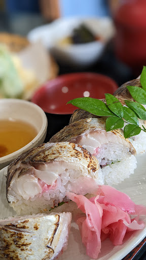 Read more一週間ほど前に両親とランチに訪問。お昼前に行ったのに15台?ほど停められる駐車場は満車でした。店内は広間に座敷ではなく椅子のテーブルでした。足の悪い親には助かりました。 注文はさば寿司御膳を。サバは凄くフワフワで、シャリに梅が仕込んでありとても美味しかったです。値段が値段なので天ぷらがもう少しボリュームあると嬉しかったですね。小鉢の白いのは食べたけど正体がわかりませんでした(笑) 店内の雰囲気も良くまた行ってもいいかなと思うお...