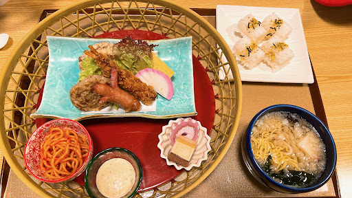 We ordered assorted nigiri, prawn spring rolls, fried cheese, and several desserts.