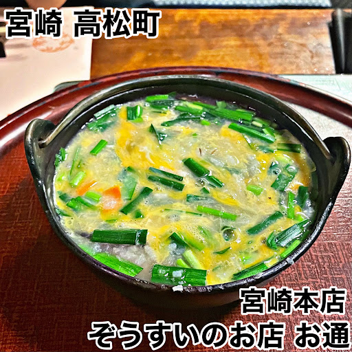 Read more【〆で雑炊を食べれる雑炊専門店】 【感想】 宮崎市高松町にある「ぞうすいの店 お通 宮崎本店」へ。 宮崎駅から徒歩15分のところにあります。 店内はテーブル席と座席があり、大人数やデートとしても利用可能なお店です。 今回はしゃぶしゃぶを食べたいと思い、しゃぶしゃぶコースを事前予約。 料理の提供スピードはちょうどいいです。 和出汁にたっぷりの野菜のざる盛りは量があり満足感がかなりあります。 アラカルトメニューも30種類ほどあります。 夜中の3:00まで空いてるので〆で雑炊を食べる方も多そうです。 【メニュー】 ・ブランドポークとたっぷりお野菜の和出汁しゃぶしゃぶコース 3,800円(税込) ・まぐろの中落ち 968円(税込) ・豚でもなく美味いチャーシュー990円(税込) ・鳥の唐揚げ935円(税込) ・フライドポテト 616円(税込) ・山芋鉄板...