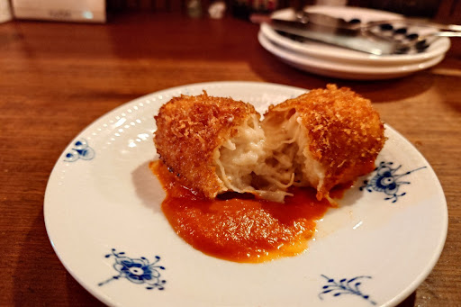 カニクリームコロッケはトマトソースと蟹の旨味がベストマッチででした。ふわとろ熱々です。