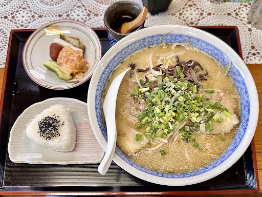 Read more《2025年7月訪問》 年配のご夫婦で営業されてました。 ラーメンは豚骨ラーメンのみで、味噌ラーメンや醤油ラーメンはありません。ギョーザや焼そば等もありません。支払いにPayPayが使えて非常に有り難いですが、最近若干の値上げをされたようで、それほど安いとは思いませんでした。それでも他の食堂の平均的価格だと思います。 車は店舗南側に7〜8台駐車出来ます。 営業時間は11:30〜14:00のみで、夕方や夜の営業はありません。定休日は基本日曜日のようですが、急なお休みの日もあるようですので遠方の方は行く前に電話確認した方が良いと思います。 店内にエアコンはあるのですが、エアコンが停止してるのかと思うほど空調が殆ど効いてなくて、店内が暑かったです。扇風機が置いてあったのが救いでした。