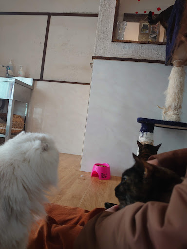 1つ気になったのは、白い長毛種の猫ちゃんの毛が絡まって毛玉が何個も固まっていたので、取ってあげたい衝動にかられましたw 猫ちゃんがブラッシングとか嫌いじゃなければクシとか置いてて...
