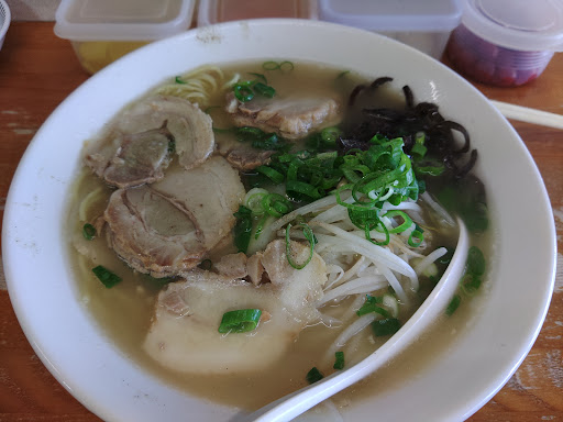 Read more2023年11月24日一休ラーメン一の宮店さん初訪問! 小林市から宮崎港へ機械の積み込みで少し早めの昼飯 トラックなので駐車場広めが条件。 一休ラーメン一の宮店さんはすぐ側のスーパーと駐車場を共有しているため、3㌧トラックやすやす駐車! チャーシューメンと餃子をオーダー 程なくまずチャーシューメン到着。 半透明の豚骨スープにチャーシューが沢山浮かんでます。モヤシとキクラゲチャーシューとネギのデフォ 優しい味に味変でニンニク醤油もアリ! 餃子は揚げ(揚げ焼き)餃子。外はカリサク中ジュワ。 と...