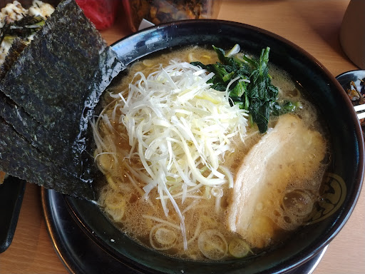 Read more食券機で購入中、途中で釣り銭切れ(1000円札)になりましたが、丁寧な対応で席に案内されました🙏 家系のネギラーメン大盛りの太麺、(麺かため) キザなマヨ丼、餃子(5個)を注文しました。 テーブルには、紅ショウガに、辛子高菜もありました。 麺は、太麺、ちぢれ麺、細麺と、選べました。 おすすめを聞いたら、太麺と言われたので、太麺を注文。もちもち麺でした。 次はちぢれ麺でも食べてみたいです☺ スープは、濃いのかなと思いましたが、意外な優しいお味でした。 マヨ丼も、羽根つき餃子もおいしかったです。 ただ、餃子か熱々ではなく、ぬるかったのが、ちょっと残念でした。 が、学生の息子は大盛がサービスで、(学生には大盛りか、替え玉サービス)で学生さんに優しいサービスですね🙌 次はつけ麺を食べてみたいです🙆 おいしかったです。又いきます。...