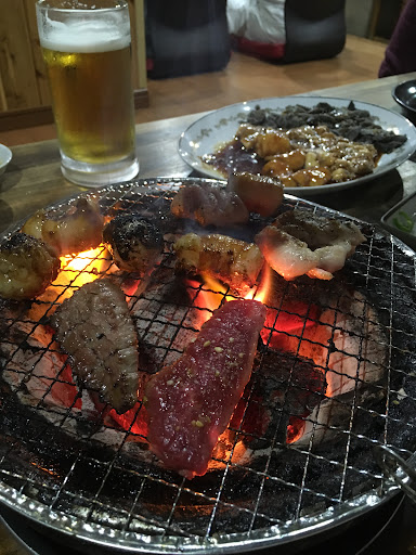 宮崎で焼き肉を食べるなら絶対に此処。どんな高級店で食べるよりも楽しんで食べれる。店の雰囲気は抜群で 七輪の炭火で炎🔥あげながら焼く醍醐味は最高です。 注文したのは、サムギョプサル、丸腸、黒毛和牛のカルビ、せせり、Pトロ、特製チャーハン、生ビール🍺 サムギョプサルは焼きながらハサミでカットしてサニーレタスにのせ、付いているコチュジャンやニンニク醤油漬け、キムチを巻いていただきます。 豚肉(サムギョプサルやPトロ)は、かなり炎🔥が出るので氷を網の上に乗せて消化させる。 丸腸はじっくり焼きレモンを搾り口に運ぶとマジとろけます。 せせりは肉質が柔らかくこちらもレモンを搾っていただきます。 黒毛和牛のカルビは軽く焼き特製タレにつけ刻んだ生の青唐辛子を乗せてください。最高です🤩 締めの特製チャーハン‼️コレ抜群に美味いです。行っ...