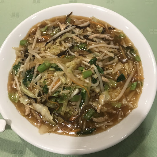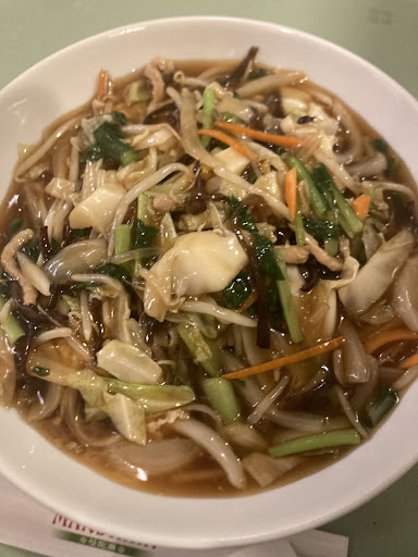 ホテルメリージュ横の立体駐車場(2階)に駐車し、受付(ナンバー伝達、車の鍵は預けずレシート受領)。 隣の建物入口から3階へ(ホテル受付も3階。エレベーター、エスカレーターあり。トイレは店内にも、3階にも複数有り)。 土曜の午後12時過ぎに立ち寄り。プロ野球のキャンプ入りでなのかお客さんは少なめ。入口付近で立ってると従業員さんがすぐテーブルへ誘導(空いてたので受付簿には無記入)。メニュー表から注文。五目あんかけ焼きそばなどの麺やランチをよく頼みますが。この日は、満腹セット(税込990円)を注文。従業員さんが注いでくれた温かいウーロン茶(無料)をいただきながら。周りには四角テーブル(4人席、椅子)が15席程、個室も有り。上を見ると波打つ布、壁には漢詩などの作品。薄緑色のテーブルクロス、照明も暖色系で落ち着いた雰囲気。テーブルには、酢、胡椒、ラー油などの調味料、紙ナプキンに爪楊枝。料理長が黄さんという方で四川料理が得意とのこと。 そうこうして、料理が届きました。千切り大根にゴマダレのシャキシャキ感が楽しいサラダ、ニンニクが入ってパンチの効いて即回復力アップしそうな にらスープ麺、塩加減も丁度良くてライスもパラパラなチャーハン(白ご飯と選択可)、ジュージュー音を立てながら鉄板焼きに乗ったアツアツ餃子(ポン酢、柚子胡椒、七味付き)、合間にコリコリ食感の味付けのいいザーサイ。最後にスッーと口の中でとろける程よい甘さの杏仁豆腐(マンゴー?、アイスと選択可)。お腹も一杯に。少しお行儀良く美味しくいただきました。 テーブルに置かれた注文票と、駐車場のレシートを添えて清算。レジでもらった1時間分の無料駐車券を駐車券受付に渡して帰路に。当時の職場の先輩から、五目あんかけ焼きそばが美味しいと紹介されてから、約30年。懐かしく変わらぬ美味しさに感謝です。ご馳...