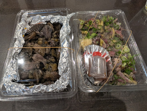 【2024年11月訪問】 宮崎旅行の際に伺いました。 ナビで迷わずにお店に到着でき、駐車場もお店の目の前にあり、旅行者にも訪れやすい場所です。 ホテルでゆっくり部屋呑みをしたい方には、テイクアウト専門店なので、特におすすめのお店です。 テイクアウト専門店ですが、予約は必須です。 今回はモモバラシと炙り刺しを電話予約しました。 どの部位があるかは仕入れによって異なるようですが、今回は購入してお部屋でいただきました! 炭の風味を感じつつ、しっかりと味付けされていて、とても美味しかったです。 また、味ぽんでいただいた炙り刺しもお肉が柔らかく、臭みも感じられませんでした。 とても美味しかったです。 宮崎旅行の際には、また伺いたいと思います。 ご馳走様でした。