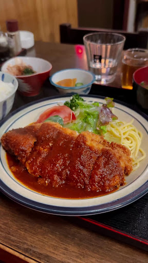 結構ボリューミーがカツが登場!! しかもドミグラスソースがかかってる!!
