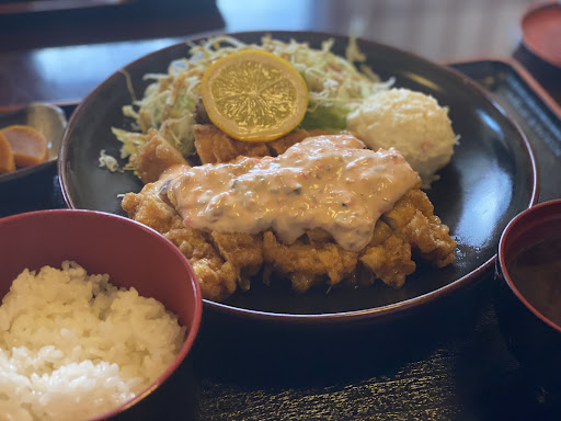 Read more先日、身内の集まりでお昼に利用させていただきました。小さい子供がいるので個室を用意していただけたのは嬉しかったです。 私が食べたのはチキン南蛮定食。1200円くらいで少しお高め。お味、量などは好みによると思いますが…。小鉢は無し。ん〜ちょっと期待外れ。こちらのお店はお刺身とかお寿司や天ぷらなどを注文されるといいかもしれませんね…。 あと店内に入って大将っぽい方がこっちをチラッとみて挨拶なし。部屋に入っても水は出てきましたが、お茶やおしぼりは催促してから。個人的にはこれから利用する事は無いと思いますが地元の常連さ...