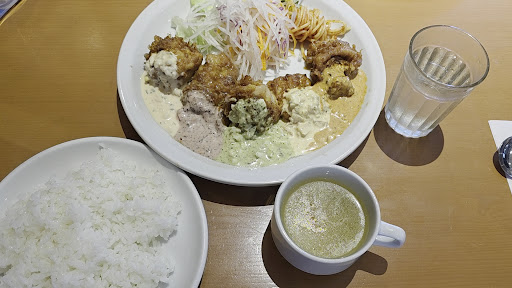 The place feels like a canteen (and is probably overdue for renovation), but the food is the star of the show. If you thought that chicken namban was only chicken with tarter sauce, this restaurant will make you think again. There's a bewildering choice of dishes, but no English menu. I had the "double," a set meal (soup and rice, etc) that offers a choice of sauces. I chose the mild chilli and the mustard sauces. The portion was large and certainly hit the spot. There was also plenty of parking, but the restaurant and carpark started to fill at...