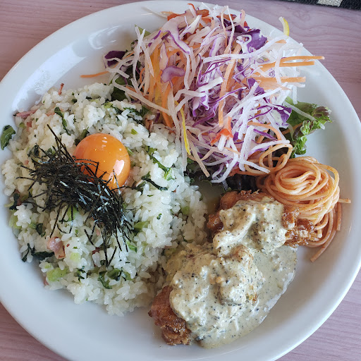 残念だったところ:料理の量が多すぎ!成長期の男子じゃないんですけどって言いたくなる量がきます笑 呼び出しボタンが置いてないのですが、台風の日でそんなに混んでいないのにもかかわらず、店員さんがこちらに注意しておらず談笑されていたのでなかなか気づいてもらえず…。お料理をもってきた時に空いたお皿を下げてくれないなど気が利かないなぁという場面がちらほらありました。 それと!お冷のおかわり頼んだ途端、5分おきにお水をつぎに回って来るのやめてもらっていいですか😂グラスが空いたのを確認してから来てください。もしくは各テーブルにピッチャーを置いてください笑 いちいち断るのが返って面倒でしたし、食事に集中できませんでした。 ちなみにカレードリアはオススメしません。ドライカレーは辛めで水っぽかったし、1/2にカットされた大きいじゃがいもが5、6個乗っていて、その上にぱさぱさのチーズがとどめとばかりにたっぷりかかっていてちょっとした地獄でしたw ケーキ類は...