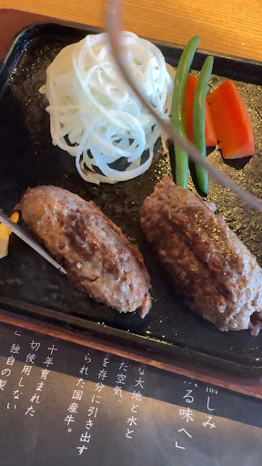 Read more宮崎では昔からある、有名なハンバーグ&ステーキ店です✨ じも活のチケットが使えることもあり、ランチで久しぶりの訪問です😅 お店が新しくなっていました❗️ 外見、内装ともにお洒落、落ち着きのあるデザイン。一部の席からキッチンが見えるのは、ナイスです👍 そう混んでいませんでしたが、タイミング悪く少し前に複数のグループ客の入店があったようで、注文してから約15分以上待ってようやく到着💦 スタッフさんに焼き加減を伝え、油で服が汚れないように紙ナプキンを持って、切り分けてもらう瞬間がこのお店の醍醐味です🎵 ハンバーグは、変わらぬ肉肉しく美味しく頂きました😋 炙りステーキは、肉厚が薄く、ステーキと言うより焼き肉でした😆 スタッフさんも若く、元気な声が飛び交う気持ちの良いお店ですが、夫婦2人のランチとして約5千円は、「少々贅沢してしまったかな⁉️」と思ってしまうお値段だと思いました😢 もう少しお安く頂けると、大変有難い、お伺いする...
