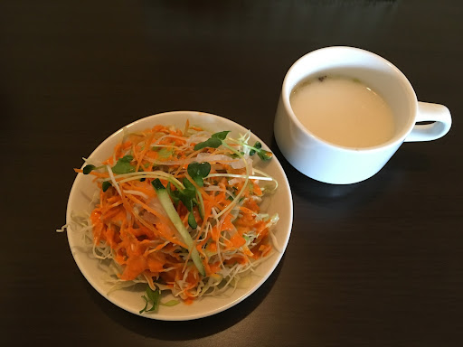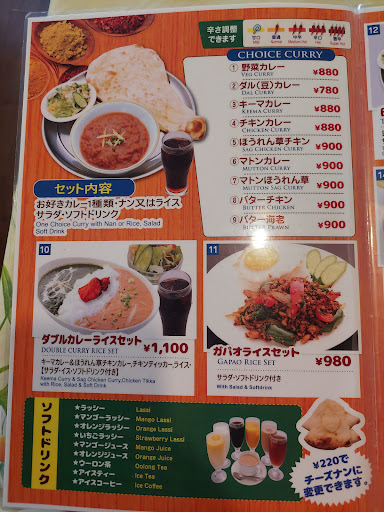 Read more妻とランチで訪れました。 近所で以前、地元テレビで紹介され、気になってたお店で、ようやく訪れることができました。 11時オープンで、11時に訪問。 他のお客さんはおらず、私たち2人のみ。 好きな席に座れたので、トイレの前は避けて座りました。 オープン直後でしたが、座席の上に、ナンのカスが。。。 店内は古めかしい感じはありましたが、不衛生という感じではなかったです。 私はラマタリーセットで、チキンカレーとバターエビカレーのそれぞれ中辛、ドリンクはラッシーをチョイス。 妻はランチセットでチキンカレーの中辛、ナン、ドリンクはウーロン茶をチョイス。 待ってる間、チキンビリヤニ(インドの炊き込みご飯のようなもの?)の貼り紙を見て、美味しそうだと思い、今回美味しければ、次回に来るなら、これかな?とwww 先にドリンクとセットサラダが運ばれてきました。 ラッシーは飲むヨーグルトにちょっとだけ酸味足したような爽やかサッパリドリンク。美味しかったです。 サラダはキャベツと人参の千切り。ドレッシングも多過ぎず少な過ぎずで、ペロッと頂けました。 メインが来て衝撃!ナンってこんなにデカいの!?と。 思わず「でっか!」と声がwww 中辛のチキンカレーもバターエビカレーも食べやすい辛さで、とても美味しかったです。チキンカレーは鶏肉が2個、バターエビカレーは大きめのエビが2個入ってます。 ラマタリーセットに付け合せのシークケバブとチキンティッカが辛めでしたが口内はそこまで辛さを感じなかったのに、食べた後の汗が止まらなかった(;´∀`) ラマタリーセットは、でっかいナンとサフランライスもあるので、男性向けかも!お腹いっぱいなりました。 めっちゃ美味しかったです!! また来ます!次は...