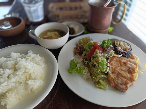 Read moreちょっとレトロな感じな内装が好きです。隠れ家的空間で食事でも使いますし、コーヒー飲みながら読書したいときにも使います。飲み物メニューも豊富で飽きません。コーヒー、紅茶どちらも苦手な人でもオリジナルのジュースがあります。誰でもゆっくりできるお店です。 オススメ料理はループカレー。ドライカレーなのですが、ちょっとピリ辛め。舌もヒーヒー言わせるもスプーンが進みます。付け合わせの調味料で辛さの調整もできます。 駐車場が非常に使いにくいのが難点。けっこう車が溜りやすい交差点に面しているので出にくいし入りにくいです。駐車場の数もお店のキャパシティーを考えると足りない気がします。それでもここは良く...