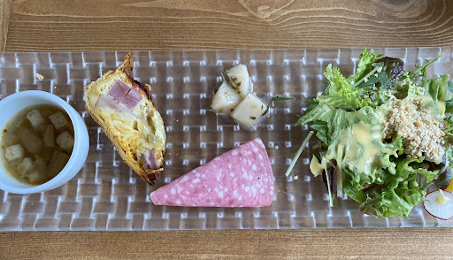 子連れに人気と聞いて期待して予約して行きました。 未満児の赤ちゃんと幼児を連れて。 子どもの年齢等伝えて可能な席だということで予約取りました。 椅子は背もたれありですが 赤ちゃんが転げ落ちる程の大きな隙間のあるタイプの椅子だったので寝かせられるのはまず不可能でした。 幼児も高さが合わないので子供用椅子が必要。 バウンサーや子ども用椅子、子どもの皿やスプーン。 全部ひとつひとつ聞かないと何も出てこないくらいで全然子連れに優しいお店ではありませんでした。 愛想良いわけでもなく、 料理は見た目がお洒落なだけで 量の割にお値段は高い… 女性のお客さんばかりでしたが 騒ぎ散らかしてうるさすぎるけど注意しないし 厨房にいたオーナーさんの子どもでしょうか、 そちらにばかり構っていまして 居心地も気分も悪くさっさと食べてゆっくりすることなく退散しました。 飲食店に過度な接客を要求しているわけではありませんが あまりに気が利...