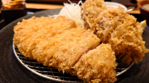 ドライブ中に昼食で立ち寄りました。九州でトンカツと言えば「濱かつ」がド定番ですが、せっかくなので違う店に行こうと思い不意に寄りました。先ずは元気の良いお出迎えから席への案内に始まりました。このチェーンは宮崎ブランド豚の「熟成肉」を使っているのが売りです。ならば1番の推しである「厚切りロースカツ」にチャレンジ。先にキャベツだけが運ばれて来ます。千切り、角切りが選べますが当然千切りで。ドレッシングはタマネギベースの自家製生ドレッシングとゴマドレッシングがあります。私はタマネギが余り得意ではないのでゴマで。キャベツはキンキンに冷えていて美味しい。ただ個人的には和風ドレッシングで食べたかったなぁ。約20分後に定食(御膳)が運ばれて来ました。家内と2人して「!!」でした。予想を遥かに超える厚切り。噛み切れるのだろうか…? 濱かつの3倍はあるでしょうか。 そんな心配は要りませんでした。簡単に噛み切れる位の柔らかさ。そして肉が甘い!! 約180gとの事ですが、食してみるとそれ以上に感じます。ご飯は16穀米と白米が選べます。キャベツ、ご飯、味噌汁、お漬物はお代わり自由となっています。店内は明るく綺麗で、スタッフの対応も良い。宮崎県だけのローカルチェーンの様です。 もったいない。価格は¥1,780-だったと思います。昼食にしては高めではありますが、夕食は軽いものしか入らない位の満腹感になります。是非厚切りを味わって欲しいですが、かなりのボリュームですから少食の方にはキツイでしょう。普通のロースカツでもかなりの厚さがあります。支払にはクレカ始め各種のキャッシュレス決済に対応しています。駐車場も広く止めやすい。中休みの時間帯がある(お昼は15時迄)ので、時間帯だけは注意が要...