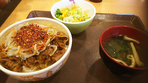 Read more店内に入った瞬間、雑巾を濡れたまま放置したような匂いがした テーブルも、とても拭いているとは思えない状態 コップの跡の水溜まりが何ヶ所かのテーブルにあり、挙句の果てには米粒までそのまま。 拭いてもらったけど、汚れ取れてないし 牛丼も味が薄くて美味しくなかった。つゆは掛け忘れたのかと思うレベルでお米は真っ白だったし、玉ねぎに全然火が通っていなくてシャキシャキで辛みが... もう、...