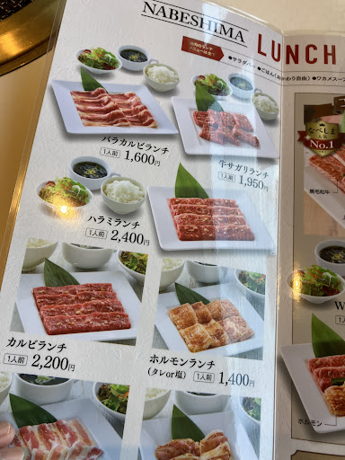 Read more宮崎のなべしま、初見参!我が家ではいつものランチメニュー、カルビ&ホルモンランチ¥1,600を注文。案内のスタッフさんが丁寧で迅速に対応してくれて好感触。サラダバーも充実していて満足。ん?サラダバーにあるキムチが、他の店のようなランチキムチじゃない!本格キムチじゃないか!いやいや、贅沢に美味しく頂きました。いろんな焼肉食べたけど、やっぱり我が家はなべしまが1番だなぁ。ご馳走さまでした。 2024年10月よりメニューと価格変更がありました。ランチのカルビ&ホルモンランチはハラミ&ホルモンランチに変わり、価格も1,900円になりました。でも、味は変わらず美味しいのと、お肉のカットが変わってハラミは厚みが増し、ホルモンは切れ目を多く入れてあり焼きやすく食べやすい様になってました。本日も大満足の...