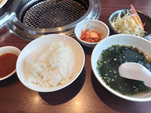 Read more2023年2月から、ランチは少し値上げしています。2023年5月、土日祝日のランチ廃止、お昼は通常メニューのみになりました。平日のランチはいつも満席。焼肉ランチEセット(牛カルビ、牛ロース、和牛ホルモン)を注文。ライスおかわりOK、スープ(たまご、ワカメ、味噌汁から選べる)、サラダ、キムチ、ドリンクつき。まず、スープの器がデカい。カルビ、ロースともに肉々しい。ホルモンにはミノも入っていたが、ぷりぷりでジューシー。キャベツもたっぷり。美味しかった。美味しかった。この値上げが当たり前の時期にこのお値段は凄くない?しかも、ご飯おかわりOKなんて、太っ腹すぎます。夜にも訪問したい。ランチで再訪。しょうが焼き定食と豚カツカレーを注文。定食はご飯の量半端ない。お肉の味付けもGood。カツカレーは、ご飯の量が、大中小から選べました。写真は中ですが、大盛りだとこれまた半端ないんだろうな。ルーは甘口だけど、お肉の切れ端がたくさん入っていて美味しかった。また来ます。 日曜日に再訪。お昼は焼肉ランチのみですが、お客さんでいっぱいの店内。日曜だからといってランチの金額アップなくいつもと同じお値段。烏龍茶のおかわりもでっかいピッチャーで頂けます。ここよりコスパいい焼肉屋さんないで...