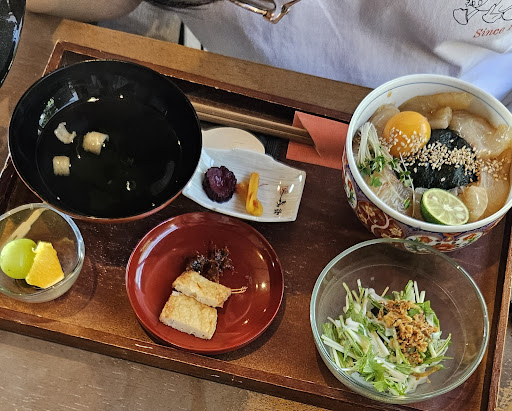 We ordered the black beef bowl and seafood bowl. It was the middle of the afternoon so it wasn’t busy. They have English menus that even explain how to make ochazuke with the rice after eating all the toppings. Both sets were phenomenal and affordable. They should have a Michelin star and if I was a local this would be one of those places that would be my secret spot. It can be a little hard to find and they also have small takeout items but we...