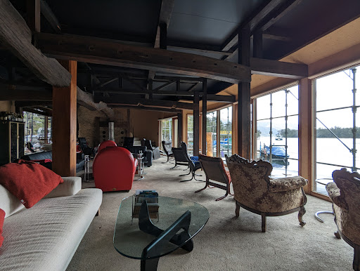 智恩寺の参道沿いにあるカフェです。注文カウンターでドリンクや料理を注文し、事前に支払いを済ませます。出来上がった料理やドリンクは席まで運ばれますが、食後のトレイや食器は返却用カウンターに返却する必要があります。給仕されるドリンクには、コーヒーや紅茶の他、アルコール類や天橋立周辺地域ならではのドリンクなど多岐に渡りますが、料理はハンバーガーのみで、その内の1つには宮津バーガーとして認定されている、イワシのオリーブオイル漬けをパティにした『サーディンバーガー』があります。 店内は広く、席数も充分にあります。とても開放的な空間で、海に面した方の壁面はほぼ全面的にガラス張りになっており、外からの光が充分に入り、まるでオープンテラス席のような雰囲気になります(勿論このカフェは天候を気にせず利用できます)。なお、店内は仕切り(及び段差)で2つに分けられており、注文カウンターが無いスペースは通常時は利用できないようになっています(楽器類が置かれているため、イベント時のみ解放されるのかもしれません)。 給仕される料理やドリンクの質はいずれもよいのですが、ハンバーガーは値段の割にやや小さいような印象を与えます。また『サーディンバーガー』は割とクセの強い味付けになっているため、好みが分かれるかもしれません。 ドリンクや料理の他、キーホルダーなどのグッズも販売されています。