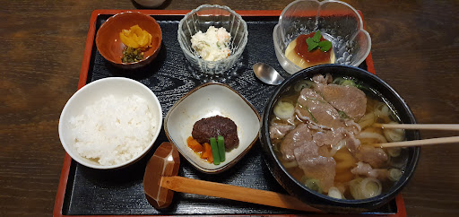 Read moreI ordered the single stamina kimchi udon and the beef nabe yaki combo. Although the portions were quite large, the flavors weren't too overpowering, making it easy to finish the bowl comfortably. The nabe yaki combo comes with potato salad, pudding, pickles, and rice, which might be a bit too much for those with smaller appetites, so I recommend the single items instead. The beef was incredibly tender and delicious. After paying, the owner gave me an Umaibong (japanese) snack. The place is friendly, quiet, and cozy, and I highly recommend it. If a restaurant of this quality were located in Kyoto or Osaka, there would be a long wait, but since Miyazu is a quiet town, there's no need to worry about that. I'm starting to like this peaceful...