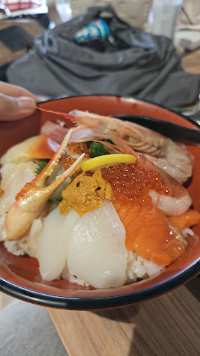 ข้าวทะเลรวม มีกุ้ง, แซลมอน, ปลาหมึก, ปู, หอยปีกนก, หอยเชลล์, ทูน่า, อูนิ, ปลานิลทะเล 2,800 เยน สดแบบสุดๆไปเลย 8/10
