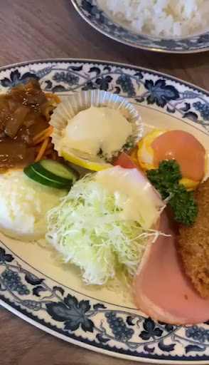 私はオムライスハッピーセットを頼みました。 オムライスは昔ながらのケチャップライスに薄く焼いた卵焼きで巻いている懐かし味がします。 ハンバーグは脇役に思えましたが食べると凄く柔らかく凄く美味しかったでです! 私は大食いなのでもう少し量が欲しかったですが友人は満足な量だったようです。