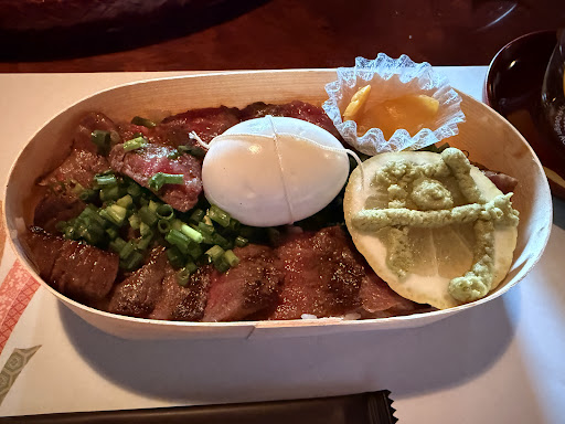 I highly recommend the Special Wagyu set for 2500 yen. It’s not cheap, but it is most definitely worth the money. The portion size is not huge, but for me, it was the perfect amount to not be too full and comfortably satiated. The beef itself is delicious. The wagyu is cooked rare and absolutely melts with a good amount of buttery chewy. There is some wasabi on the side to literally spice things up as you wish as well as a like to help cut through the wagyu fat. The egg is a perfectly cooked soft boiled egg. Finally, the rice is nice and fluffy with green onions to finish it up.
