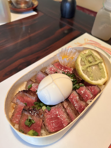 Read moreWe would highly recommend getting Wagyu steak bento set as it was really good. The other sets were also delicious too so it would be a hard decision if you go there. We drop by this restaurant for lunch after we explore Kasamatsu Park. It looks like a typical Japanese lunch box style bento, so we were thinking of eating near the beach but the nice lady let us come inside because it was getting pretty hot outside. We did not expect that there was such a cozy tatami room inside. It was really nice and clean. It seems they renovated an old Japanese house but the space was a mixture of classic and modern styles which looked excellent. There was a small pond in the yard and some gold fish were swimming. The bento box was cute and fun because it looked like an Ekiben (train lunch box). We enjoyed the atmosphere and the...