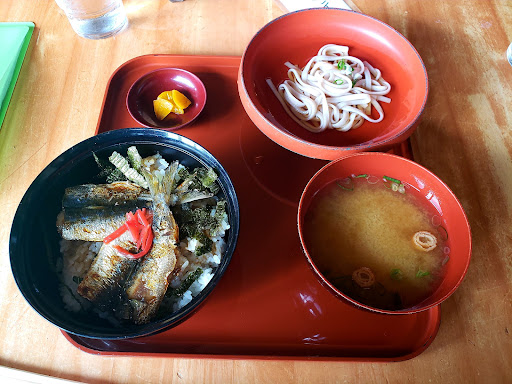 I love this restaurant. This region is famous throughout Japan for seafood, and Tsuruya has great options ranging from local sardines, to a seafood rice bowl packed with local seafood, and even Ine Yellowtail served shabu-shabu style (which can be really expensive). But for all that seafood, Tsuruya Shokudo also has a good balance, because sometimes you just don't want seafood, especially when it's everywhere. This restaurant also has two really unique noodle dishes, a red udon made with ancient red rice, and purple soba. I love soba, but I also really like sardines, and as luck would have it the sardine rice bowl was served with a small side of soba and miso soup to boot. I think it was around 1500 yen, which is a little higher than I would usually like to pay for lunch, but considering the amount of food, the uniqueness of the food, and that a lot of it is local, I was quite happy.