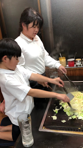 生活応援クーポンでお邪魔しました!毎朝、子ども達の登校を13年間見守ってくれているというお話を聞きました。真ん中っ子が学校の校外見学?学活かな?で、お好み焼きを食べた。と言っていたので来ました。なんと無料で食べさせてくれているらしいです。 …素晴らしい宣伝です。 家に居るみたいで、くつろぎました。そしてめっちゃ呑んだ。てへっ。2人で20杯飲んだか?? 焼きそばも、お好み焼きもボリューミーで最高です。やりたがりの子ども達も、鉄板でいじくって楽しそうでした。美味しかったぁ〜。家から近いし久しぶりにリラックスしました。行きつけになること間違い無しです。だってもう行きたいもん。 ハングリーモンスターは、〆に白飯を食べていました。オバケクリー...