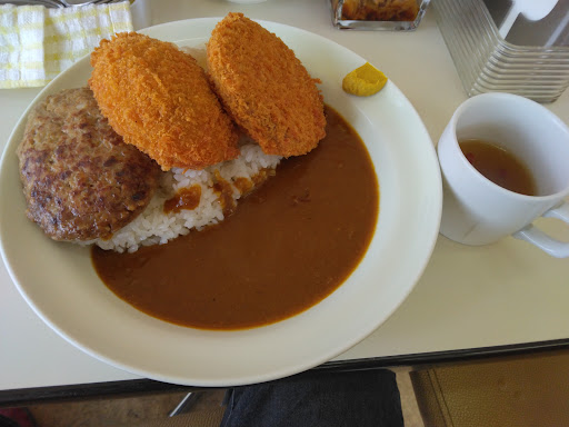 面白かったのが着席して水が運ばれてくる時にランチスープも一緒に運ばれてきました。 看板メニューのカレーを注文。 カレーはインド風と欧州風と分かれています。 種類は豊富でビーフカレーにしました。 辛さにバンチありますね。 普通のカレー屋さんよりも辛い感じですが、イヤな辛さでもないし、調整もしてくれるようです。 クセになりそうな辛さに満足です。 ただ具材が少ない、、、 メインのビーフも4切れくらいかな?野菜はカレーにとけ込んでるな感じでした。