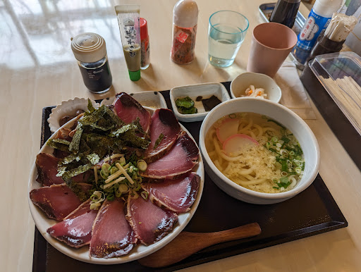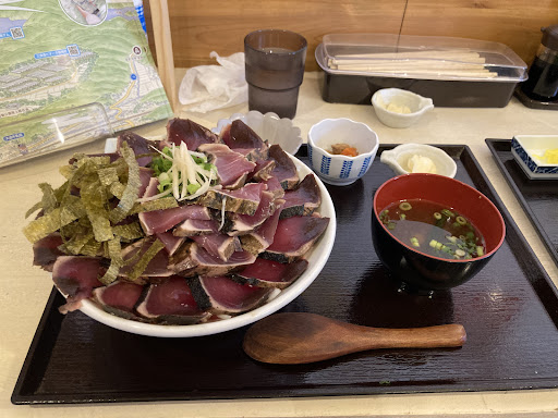 Read more先に書いておきます 当方は高知市内を中心にした高知県で主流のカツオのタタキしか食べておらず室戸市のタタキはこのお店で初めて食べました カツオの藁焼きは良いのですが表面が焦げてしまって苦い味がするのは残念でした 藁焼きしてからのオペレーションも良くないようでほのかに温かいながら藁の香ばしい匂いと 黒潮町産の粗塩で食べる自分の知るタタキとは違い少し残念でした 玉ねぎも量が多くカツオより玉ねぎの味が強く感じられさまざまな調味料で味の調整もしましたが修復不能 お店で酸っぱい匂いも感じたのですが玉ねぎも何かしてるのかと感じるほど酸っぱさを感じました あくまで個人の感想ですが高知で広く食べられてるものでなく室戸地方で食べられてるタイプのようなので土佐の名前は控えて室戸のタタキと言ってた方が良いでしょう お店のスタッフさん達はすごく丁寧で一生懸命やられてて好印象でした 本場を離れるとやはり〜〜風という印象です 藁の香ばしい匂いと外がほんのり温かく優しい味の高知市のカツオのタタ...