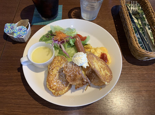 Read moreモーニングで行きました。朝からメニューが豊富で迷いましたが、フレンチトーストにウインナー、サラダ、卵、コーンスープなど付いたセットにしました。ドリンクはアイスコーヒーで。 メインとなるフレンチトーストがフワッとしていて卵の味も濃厚で凄く美味しかったです。 店内の様相、BGM、メニュー(アサイーやトロピカルなドリンクなど)に至るまでハワイアンを意識されているようでしたが、私の印象は、日本の田舎にありがちな、田舎のオシャレなカフェでした。実はそこを目指されているのかもしれません。狙いどおりなのか、お客が老若男女問わず幅広い層の方らがおられましたし、ぶらりと入りやすいお店の雰囲気が大成功と思います。 何より、席に着くと、ウェルカムポップコーンを1皿ふるまっていただけたのが断然ゴキゲン要素で、冷たくて美味しいほうじ茶やフルーツウォーターが飲み放題なのもありがたいくらいでした。 若い女性のおひとり様客も何人もいらっしゃいました。 その後、何度かモーニングで通いましたが(都度メニューをフルーツのパンケーキやトーストに変えました)、ランチタイムの定食にも1度伺いました。 ランチでは唐揚げ定食を頂戴しましたが、唐揚げもサラダもご飯(雑穀米)も全てが特盛でビックリ仰天、必死で食べないと大変な量でした。 けれどすごく美味しかったので、量の多さはありがたかったです。惜しみない...
