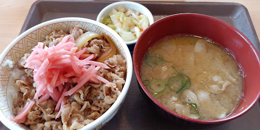 Read more2022.4.20 当方定番の牛丼(並)+豚汁お新香セット(620円)。牛丼は他店より味付け薄めだった気がします。気のせいかもしれませんが。豚汁は熱々で◎。お新香は店舗毎にバランスが違うみたいで、こちらは白菜メインで青菜は見えませんでした。後、店員さんの接客が丁寧でした。 2022.7.28 牛丼(並)・豚汁・サラダセット(690円)。牛丼はネギだく(玉ねぎ多め)にしてタブレットで発注。ネギだく牛丼ですが、ごはんの量が普段より多い気はするも、玉ねぎは多かった?と聞かれると、「目に見えて多いとは思わ...