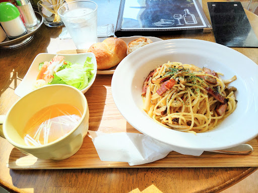 Read moreお盆前、夏休みの繁忙期で、周辺にあるいくつかの施設は家族連れで賑わっていましたが、とりあえず朝からかなりの暑さで、冷たいものを求めて入りました。まだ早い時間帯で、外のソフトクリームには列ができていましたが、店内はモーニングを注文しているお客さんが数組いる程度で少なく、落ち着いた雰囲気でゆったり過ごせました。メニューにはハンバーグやオムライスなど美味しそうで、気軽にランチもできる感じでした。食べ終わった頃に昆布茶が出てきて、今どき珍...